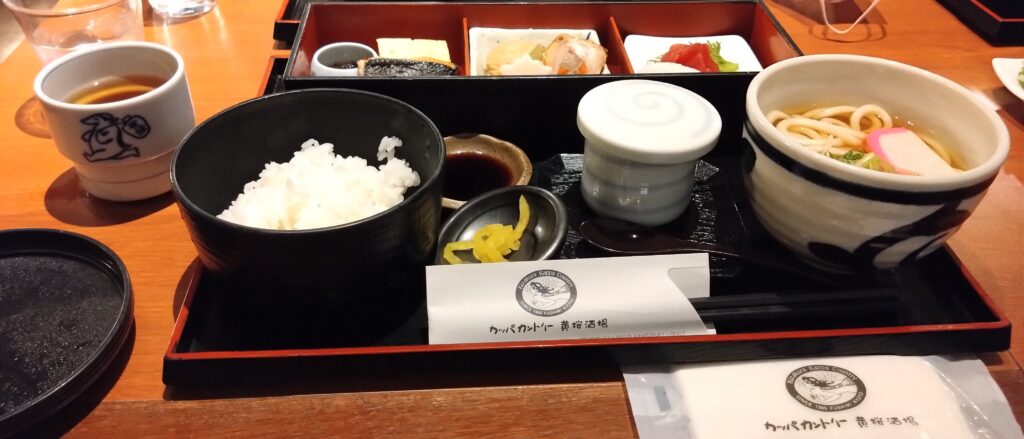 伏見というと、水がおいしいということで、昔からの酒造メーカーが多く残っているんだけど、いつも伏見に来ると、カッパ黄桜で有名な『キザクラカッパカンパニー』に立ち寄ってご飯を頂くのだけど、お水が美味しい為か、ご飯がとっても美味しいんだ。もちろんオカズも絶品だ。