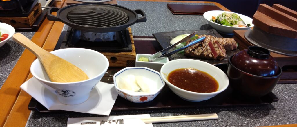 私はスタミナラーメンなど安いものを言ったつもりだったのですが、同僚は暑いので、ラーメンよりもお肉が良いとの事で、思い切って『かごの屋』さんへ行きました。